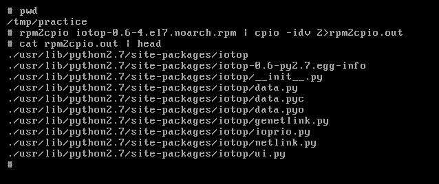 Warning: It is recommended you do this in a directory you have write permissions and it does not clutter your system, create a new directory under /tmp, for example, /tmp/practice. cpio will recreate the full system structure, so be aware of doing this in a directory that does not overwrite any files that may be in your system. The author is not responsible of any damage to your system.