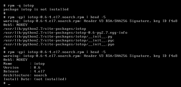 # rpm -qi iotop (query-information)