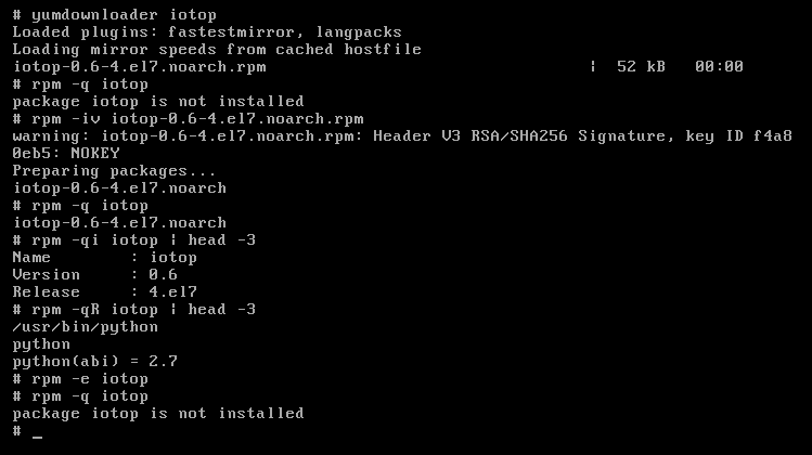 # rpm -iv iotop-0.6-4.e17.noarch.rpm